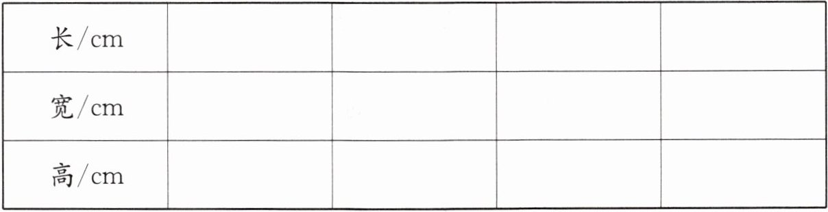 宽/cm 1 2 3 3 高/cm 1 1 1 2 体积相等,因为它们都是用18个同样大的小正方体摆成的