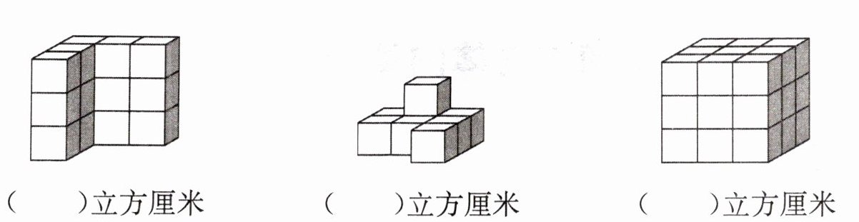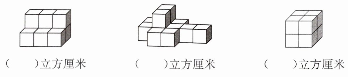 下面的物体都是用 1 立方厘米的正方体摆成的,它们的体积各是多少立方厘米?