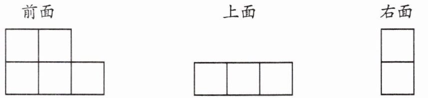4. 小军用棱长 1 厘米的正方体摆成一个物体,下面是从不同方向看到的图形,摆成这个物体用了( )个正方体。