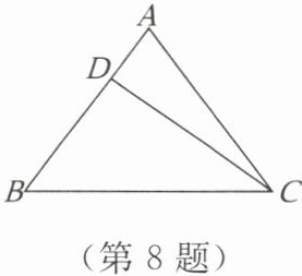 8. 已知等腰三角形 ABC 的底边 BC = 20 cm,D 是腰 AB 上一点,CD = 16 cm,BD = 12 cm。