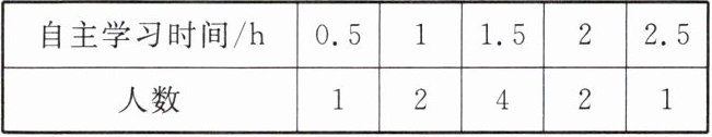 6. 为了解八年级学生每天的自主学习情况,随机抽查了八年级某班 10 名学生每天自主学习的时间情况,统计结果如下表,则下列推断正确的是(