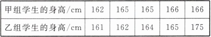 (填“甲组”或“乙组”);|甲组学生的身高/cm|162|165|165|166|166|