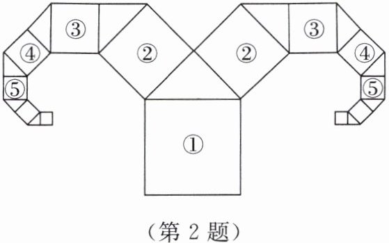 2. 如图所示的是一种“羊头”形图案,其作法是:从正方形①开始,以它的一边为斜边,向外作等腰直角三角形,然后再以所作的直角三角形的直角边为边,分别向外作两个正方形②……若正方形①的面积为$64$,则正方形⑤的面积为(