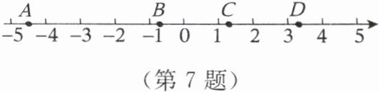 7. 如图,数轴上 $ A $,$ B $,$ C $,$ D $ 四个点所表示的实数分别为 $ a $,$ b $,$ c $,$ d $,在这四个数中绝对值最小的数是(