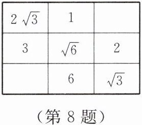 8. 【数学游戏】如图,在下面的表格中,横向、纵向及对角线方向上的实数相乘都能得到同样的结果,则两个空格中的实数之积为(