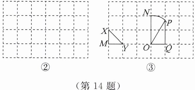(2) 小彬从材料中的结论出发展开联想,经过探究,发现正无理数$\sqrt{2}$,$\sqrt{3}$也是欧几里得数,可分别用图③中两个三角形的边$XY$,$PQ$表示。