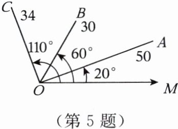 5. 如图,点O,M,A,B,C在同一平面内,若将点A的位置记为(50,20°),点B的位置记为(30,60°),则图中点C的位置应记为