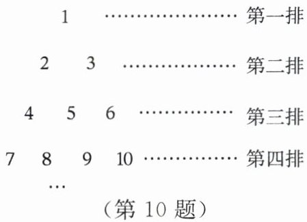 10. 将正整数按如图所示的规律排列下去。若用有序实数对(n,m)表示第n排,从左到右的第m个数,如(4,3)表示实数9,则(7,2)表示的实数是