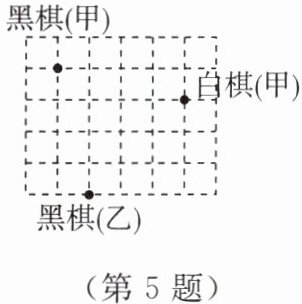 5. 如图,在围棋棋盘上建立平面直角坐标系,已知黑棋(甲)的坐标为 $ (-2,2) $,黑棋(乙)的坐标为 $ (-1,-2) $,则白棋(甲)的坐标为