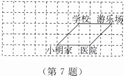 7. 【综合与实践】如图所示的是小明家、学校、游乐场、医院的相对位置。