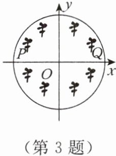 3. 如图,小区的圆形花园中间有两条互相垂直的小路,园丁在花园中栽种了 $ 8 $ 棵海棠树。若 $ P $,$ Q $ 两棵海棠树的位置关于小路对称,在分别以两条小路为 $ x $ 轴、$ y $ 轴的平面直角坐标系内,若点 $ P $ 的坐标为 $ (-5,1) $,则点 $ Q $ 的坐标为(