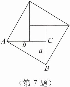 7. 【数学文化】如图,“赵爽弦图”是由4个全等的直角三角形围成的。在Rt△ABC中,BC= a,AC= b,∠ACB= 90°,若图中大正方形的面积为42,小正方形的面积为5,求$(a+b)^2$的值。