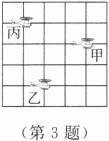 3. 直升机除了可以正常飞行,还可以悬停在空中进行作业,这也是直升机区别于一般固定翼飞机的一种特有飞行状态。如图,训练中的三架直升机按要求悬停在指定高度,若甲、乙的位置分别在 $ (1,0) $,$ (-1,-2) $,则丙的位置在