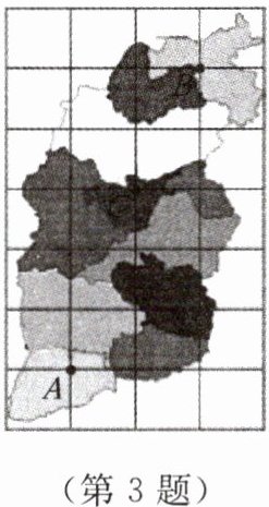 3. 如图所示的是某地行政区域分布图,设点 $ A $ 的坐标为 $ (-2,-1) $,点 $ B $ 的坐标为 $ (0,4) $,那么点 $ C $ 的坐标为