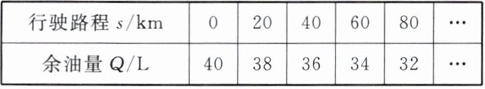 5. 某汽车油箱余油量 $ Q $(单位:$ L $)与汽车行驶路程 $ s $(单位:$ km $)有如下关系: