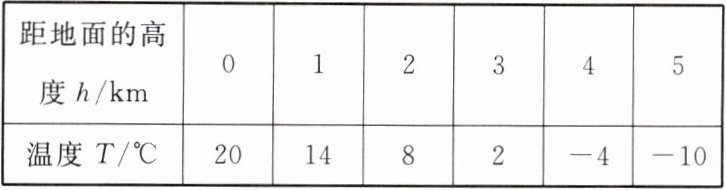 |距地面的高度 $ h/km $| $ 0 $ | $ 1 $ | $ 2 $ | $ 3 $ | $ 4 $ | $ 5 $ |