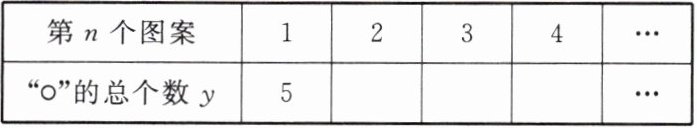 | … |(2)请写出第 $ n $ 个图案中“○”的总个数 $ y $ 与 $ n $ 之间的函数关系式。