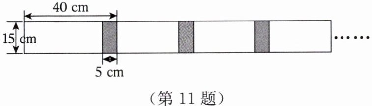 11. 【综合实践】将长为 $ 40 \, cm $,宽为 $ 15 \, cm $ 的长方形纸条,按如图所示的方法黏合起来,黏合相邻纸条重叠部分的宽均为 $ 5 \, cm $。