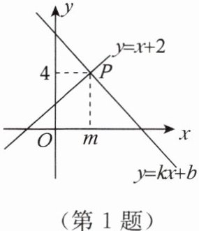 1. 如图,一次函数 $ y = kx + b $ 与 $ y = x + 2 $ 的图象相交于点 $ P(m,4) $,则关于 $ x $ 的方程 $ kx + b = 4 $ 的解是(