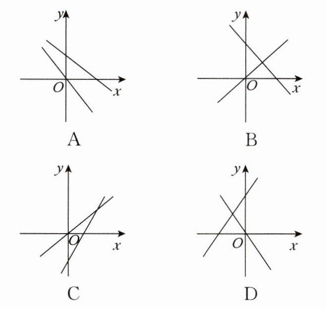 1. 已知一次函数 $ y = kx + b $ 与 $ y = kbx $($ k $,$ b $ 为常数,且 $ kb \neq 0 $),它们在同一平面直角坐标系内的图象可能是(