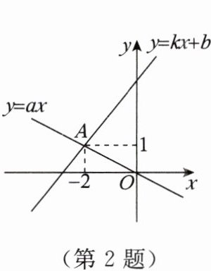 2. 如图,函数 $ y = ax $ 和 $ y = kx + b $ 的图象相交于点 $ A(-2,1) $,则方程 $ ax = kx + b $ 的解为