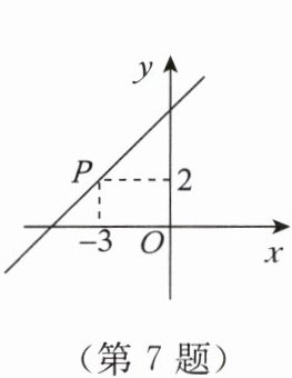 7. 如图,直线 $ y = kx + b(k \neq 0) $ 经过点 $ P(-3,2) $,则关于 $ x $ 的方程 $ kx + b = 2 $ 的解是