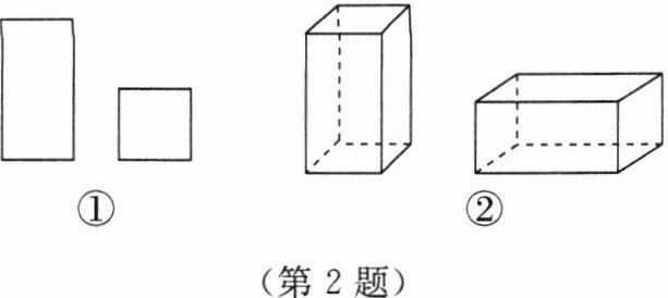 2. 用图①中的长方形和正方形纸板作侧面和底面,做成如图②的竖式和横式两种无盖纸盒。现有 60 张正方形纸板和 140 张长方形纸板,如果做两种纸盒若干个,恰好将纸板用完。设做 $ x $ 个竖式无盖纸盒,$ y $ 个横式无盖纸盒,根据题意列出的方程组是(