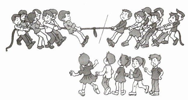 (3)在拔河比赛中,四(3)班和四(4)班的同学拼得难分难解。如果你是啦啦队中的一员,你会