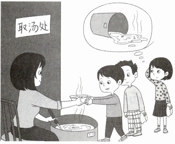 (2)隔壁班的汤桶不小心打翻了,不少同学没有喝到汤。要不要把我们班的汤分一些给他们呢?