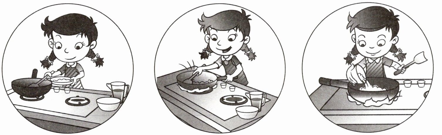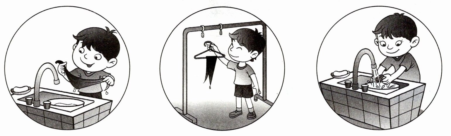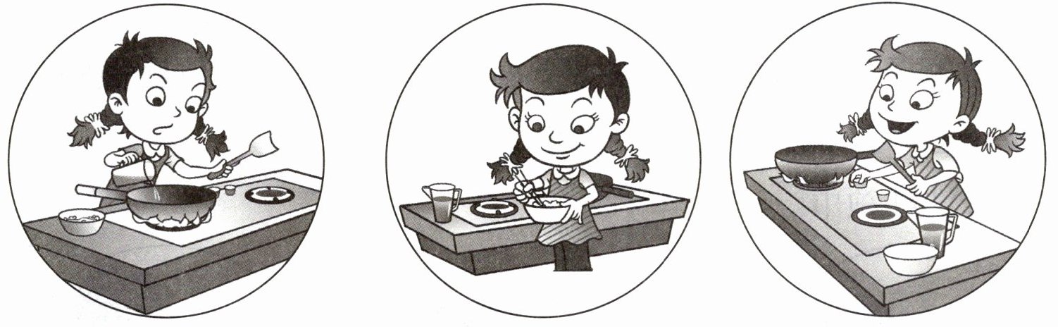 做家务有顺序,讲方法。下面这两项家务活,你会做吗?应该按怎样的顺序来做呢?在相应图片下写上序号。