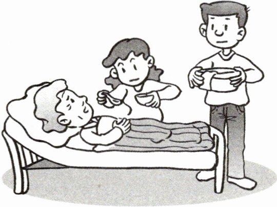 (2)奶奶生病住院了,爸爸妈妈一有时间就去医院照顾奶奶。我会