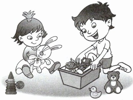□ 假期里,表妹到我家里来玩,我把自己的玩具拿出来和她分享。