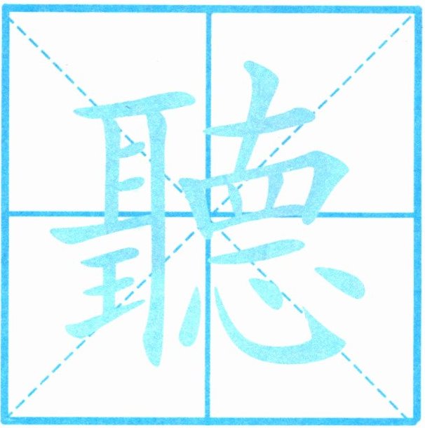 4. 中国的汉字文化博大精深,每一个字都有其独特的渊源和深刻的含义。试着描红繁体字“听”,了解字的含义,感受沟通交流时倾听的注意点。