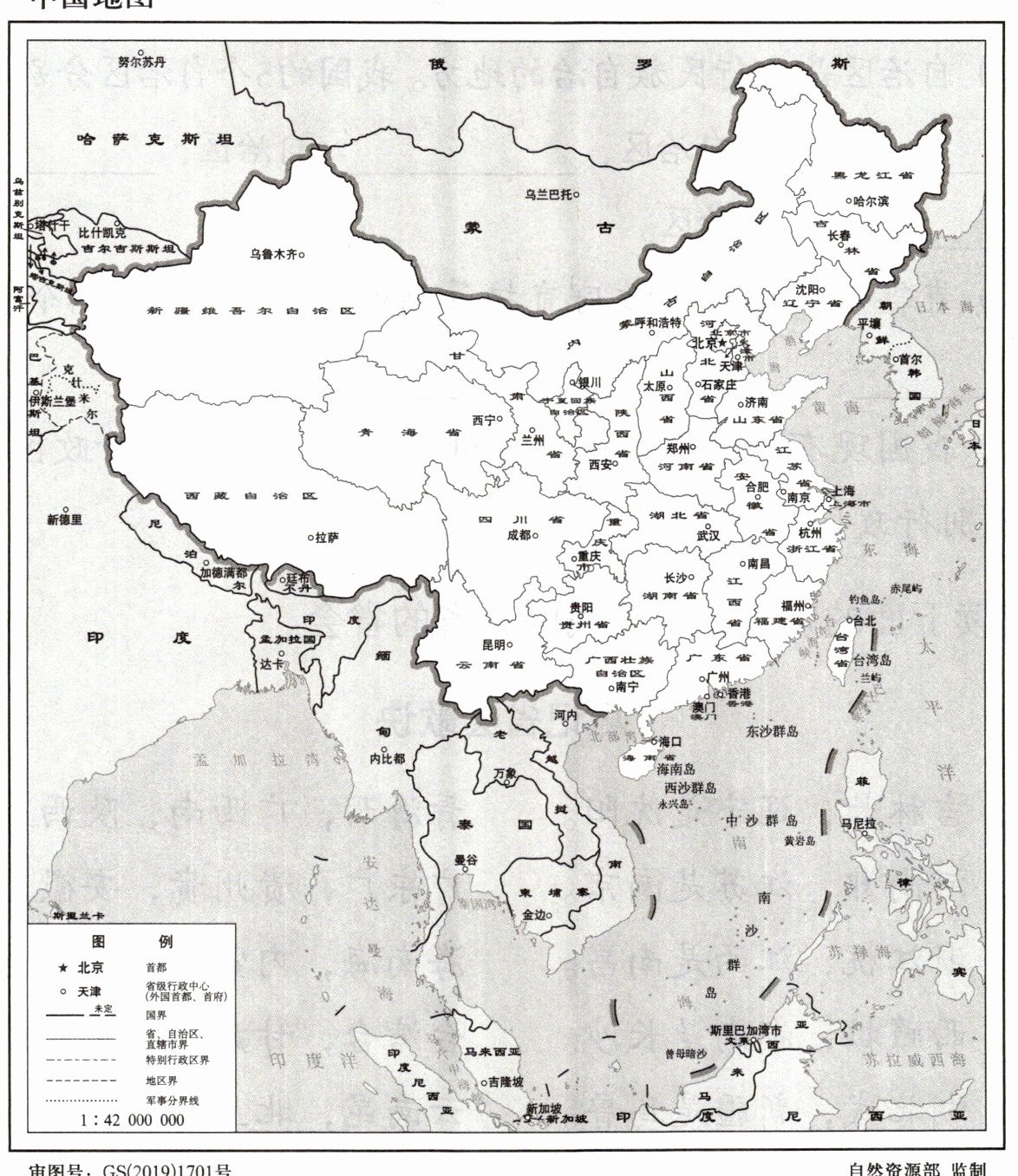 (1)用色笔圈出我国大陆濒临的四大海域和我国的台湾岛。