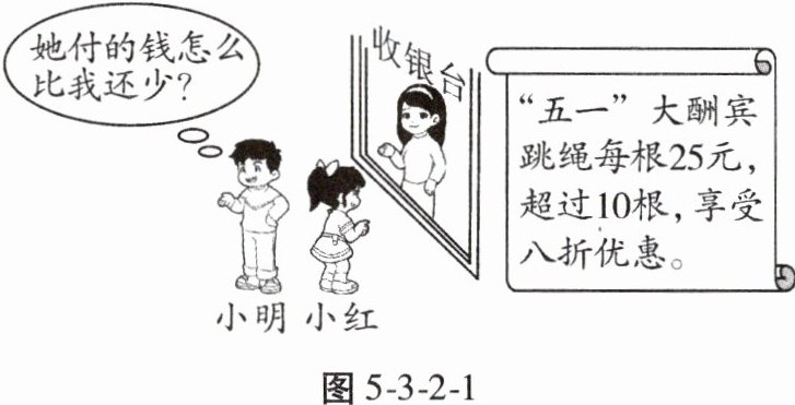 (2)小红比小明多买2根,付款时小红反而比小明少付5元,你认为有这种可能吗?若有,请求出小红购买跳绳的根数;若没有,请说明理由。