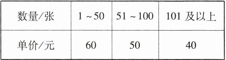 方案三:甲购51张,乙购40张:$51×50 + 40×60 = 4950$元;