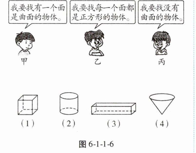 【例1】如图6-1-1-1,观察这个纸盒,从中可以看出哪些你熟悉的图形?