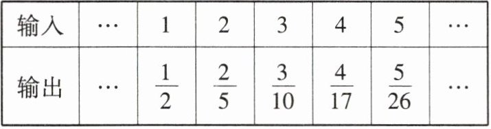 |输出|…|$\frac{1}{2}$|$\frac{2}{5}$|$\frac{3}{10}$|$\frac{4}{17}$|$\frac{5}{26}$|…|