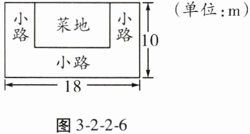 7. 如图3-2-2-6,有一块长为 $18$ m,宽为 $10$ m 的长方形土地,现将三面留出宽都是 $x(0 < x < 8)$ m 的小路,余下的部分为菜地。