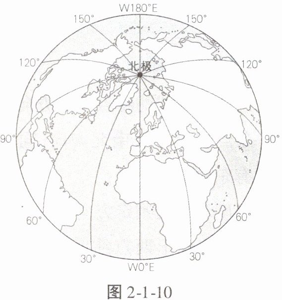 6. (1)在图 2 - 1 - 10 中标注本初子午线。
