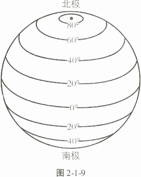 (2)在图 2 - 1 - 9 中的纬度数值后标注“N”或“S”。