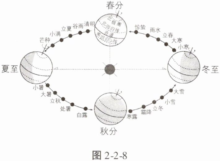 (2024·安康期末)二十四节气是中国古代历法的独特创造,由地球公转运动产生。读二十四节气位置示意图(图 2 - 2 - 8),完成 4—6 题。