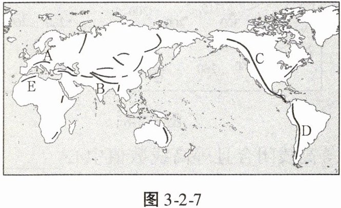 9. 读世界主要山脉分布图(图3-2-7),完成下列问题。