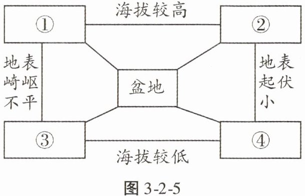 7. 读陆地地形联系与区别示意图(图3-2-5),下列判断正确的是(