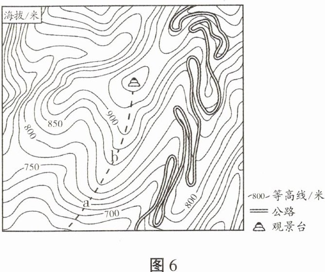 9. (2024·陕西中考)某中学地理小组到附近的森林公园开展“识别山体部位”的研学活动。图6为该区域等高线地形图。据此完成下列问题。