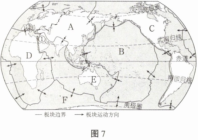 (2024·汉中期中)图7是世界六大板块分布图。读图完成10、11题。