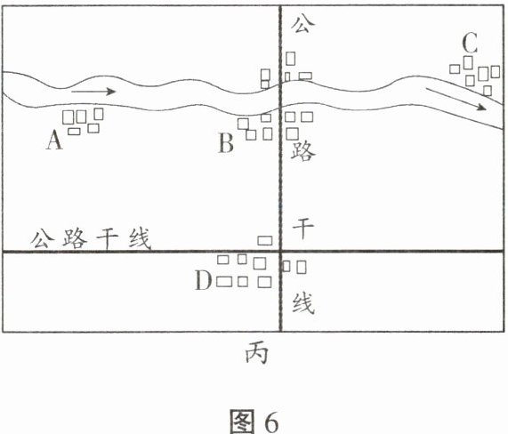 (工业或农业)为主。(2) 图6中A、B、C表示乡村聚落。A、B、C聚落的分布特点是沿
