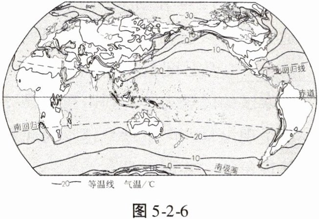 读世界 1 月平均气温分布图(图 5-2-6),完成 4、5 题。