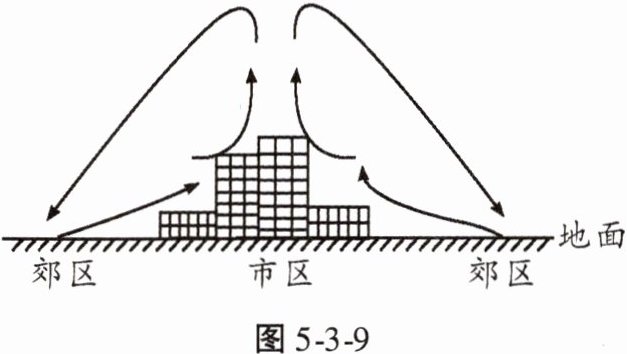 读某城市热岛效应示意图(图 5-3-9),完成 7、8 题。