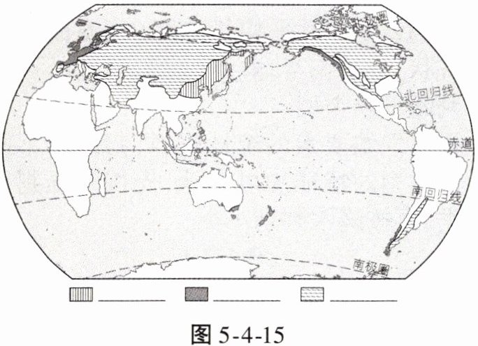 (3)根据温带气候类型的分布把图 5-4-15 中的图例补充完整。
